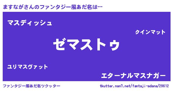 | 男性向けラノベタイトル風あだ名 | 『はたらくますながさま!』 |