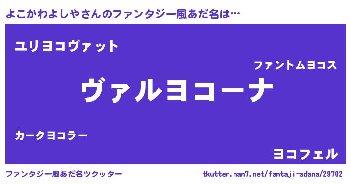 | 男性向けラノベタイトル風あだ名 | 『魔弾の王とよこかわよしや』 |
