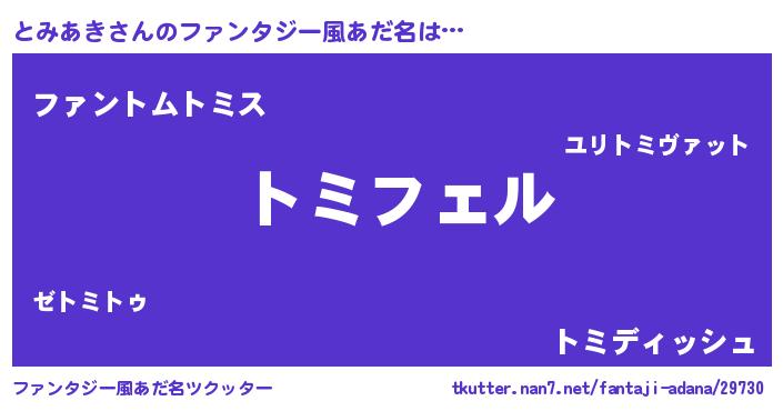 | 男性向けラノベタイトル風あだ名 | 『とみあきに滅ぼされるだけの簡単なお仕事です』 |