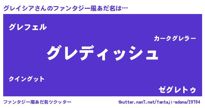 | 意味不明あだ名 | 『永久保存グレイシア』『自称グレイシア』 |