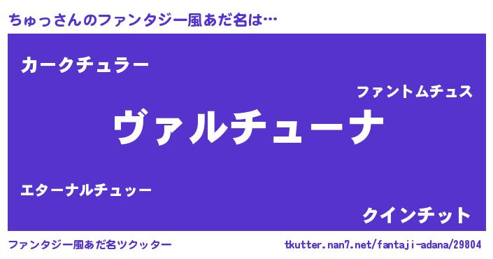 | 男性向けラノベタイトル風あだ名 | 『魔弾の王とちゅっ』 |
