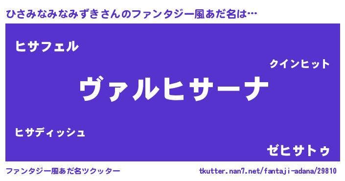 | 男性向けラノベタイトル風あだ名 | 『この素晴らしい世界にひさみなみなみずきを!』 |