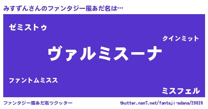 | 男性向けラノベタイトル風あだ名 | 『この素晴らしい世界にみすずんを!』 |