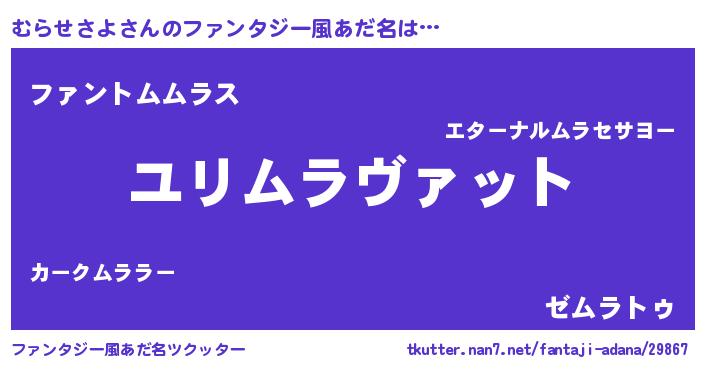 | 男性向けラノベタイトル風あだ名 | 『ムラセサヨスレイヤー』 |