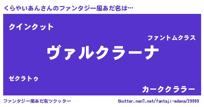 | 男性向けラノベタイトル風あだ名 | 『魔弾の王とくらやいあん』 |