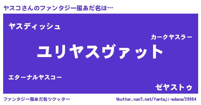 | 男性向けラノベタイトル風あだ名 | 『転生したらヤスコだった件』 |