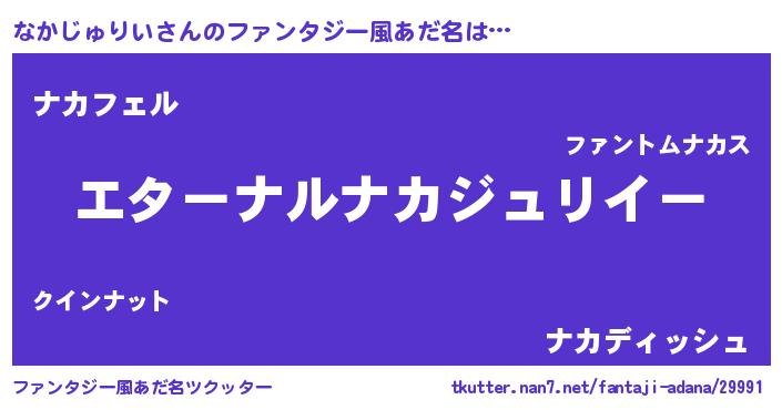 | 男性向けラノベタイトル風あだ名 | 『やはりなかじゅりいの青春ラブコメはまちがっている 』 |