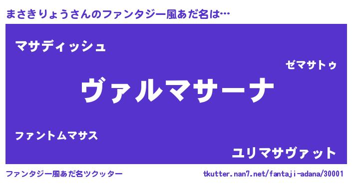 | 男性向けラノベタイトル風あだ名 | 『魔弾の王とまさきりょう』 |