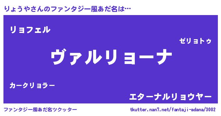 | 男性向けラノベタイトル風あだ名 | 『この素晴らしい世界にりょうやを!』 |