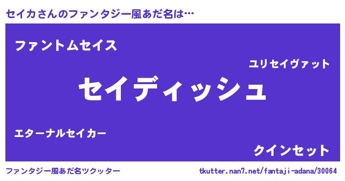 | ヘコむあだ名 | 『セイカ(笑)』『セイを』『なまこ酢』 |