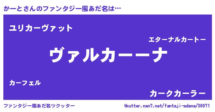 | 女子向けラノベタイトル風あだ名 | 『悪役かーとに転生したようですが、知った事ではありません』 |