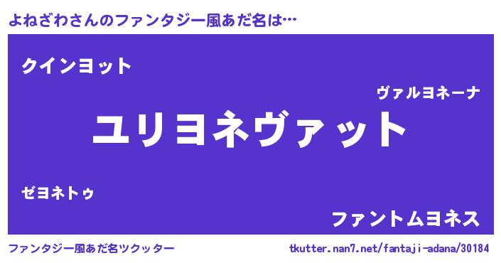 | 男性向けラノベタイトル風あだ名 | 『よねざわ~年齢イコール彼女いない歴の魔法使い~』 |