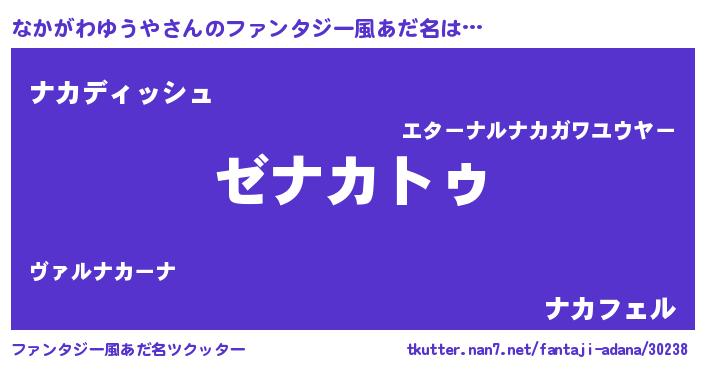 | 男性向けラノベタイトル風あだ名 | 『Re:なかがわゆうやから始める異世界生活』 |