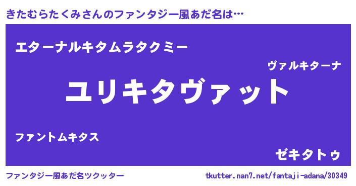 | 男性向けラノベタイトル風あだ名 | 『きたむらたくみ~年齢イコール彼女いない歴の魔法使い~』 |