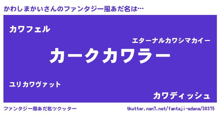 | ヒーロー風カッコイイあだ名 | 『スーパーカワシマカイ』『仮面カワダー』 |