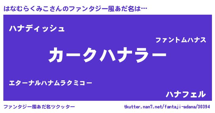 | ヘコむあだ名 | 『はなむらくみこ(笑)』『はなにー』 |