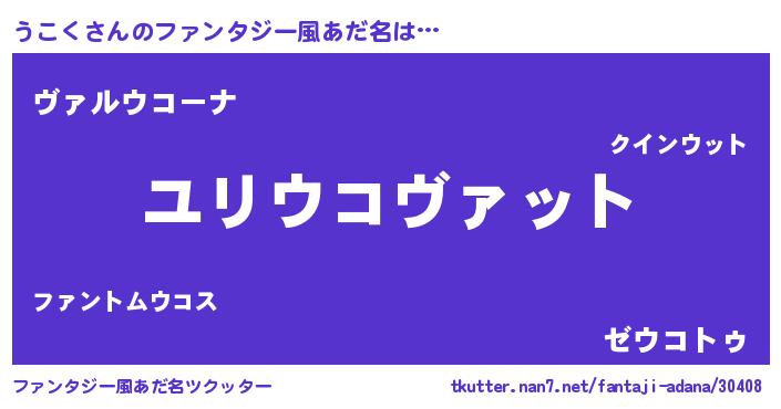 | 女子向けラノベタイトル風あだ名 | 『うこくの玉の輿計画!』 |