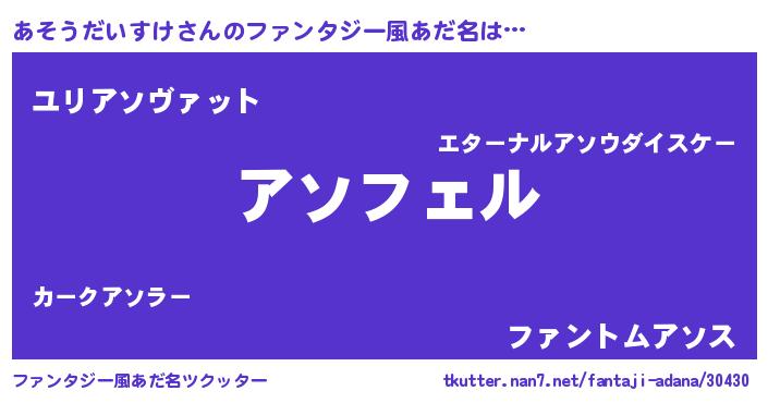 | ツイッター | あそうだいすけさんのツイッターID『fukuyoka_star』 |