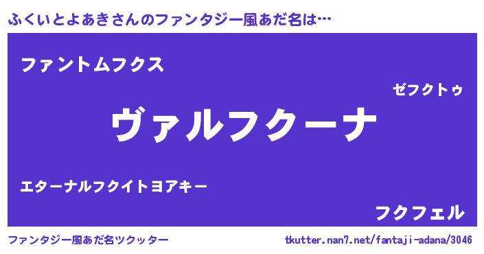 | 男性向けラノベタイトル風あだ名 | 『魔弾の王とふくいとよあき』 |