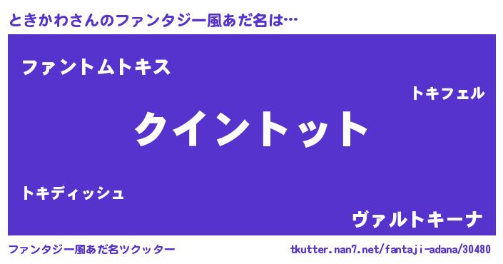 | 女子向けラノベタイトル風あだ名 | 『ときかわ恋絵巻』『ときかわ様がみてる』 |