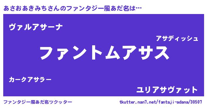 | 女子向けラノベタイトル風あだ名 | 『あさおあきみちは平凡を望む』 |