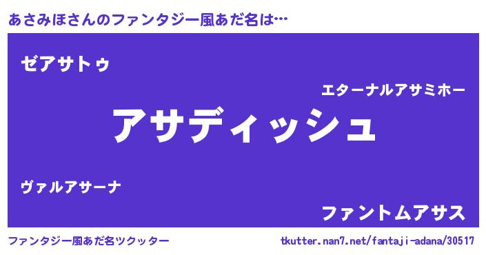 | ポケモン風あだ名 | 『ゼニアサ』『アサセウス』 |