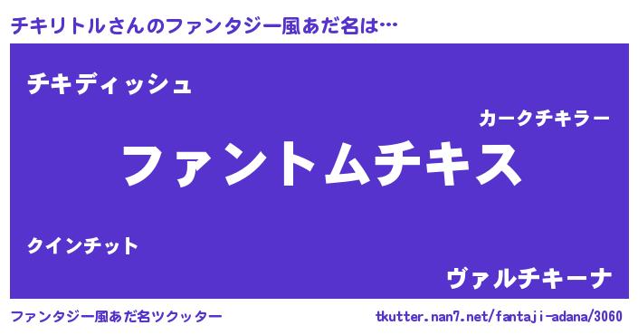 | 男性向けラノベタイトル風あだ名 | 『チキリトルの嫁は女の子じゃないと思った?』 |