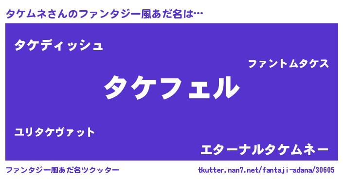 | ヒーロー風カッコイイあだ名 | 『スーパータケムネ』『ネオタケムネ』 |