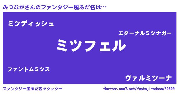 | 男性向けラノベタイトル風あだ名 | 『みつながの憂鬱』 |