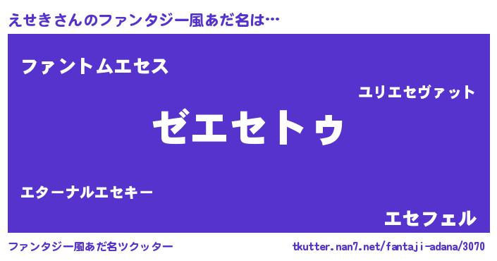 | 意味不明あだ名 | 『自称えせき』『とにかく怪しいえせき』 |