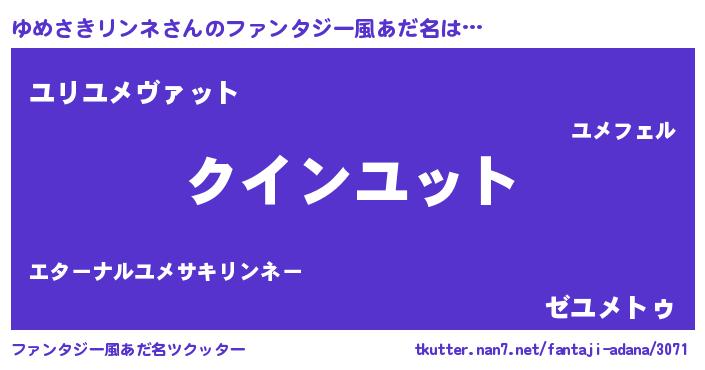 | ポケモン風あだ名 | 『ユックウザ』『ユメキング』 |