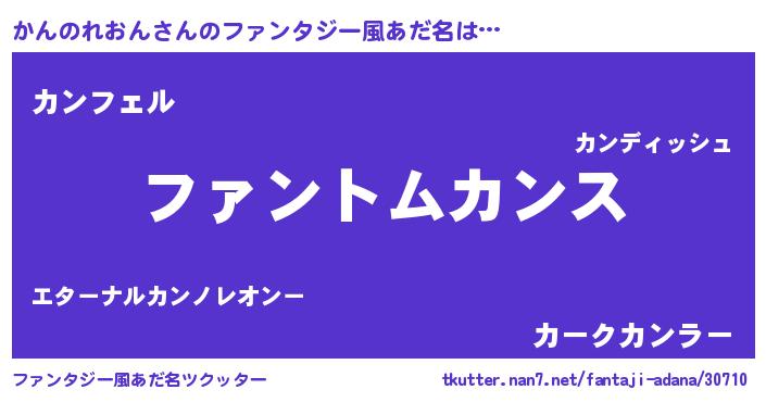 | 胡散臭い通販商品みたいなあだ名 | 『信頼と実績のサプリメント…その名も「かんのれおん」』 |