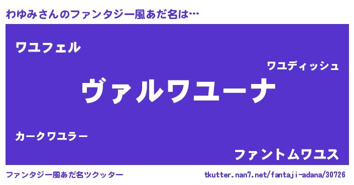 | 男性向けラノベタイトル風あだ名 | 『魔弾の王とわゆみ』 |