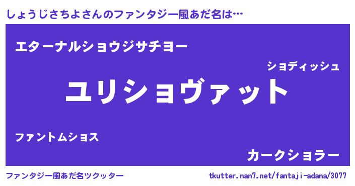 | 男性向けラノベタイトル風あだ名 | 『しょうじさちよ~年齢イコール彼女いない歴の魔法使い~』 |