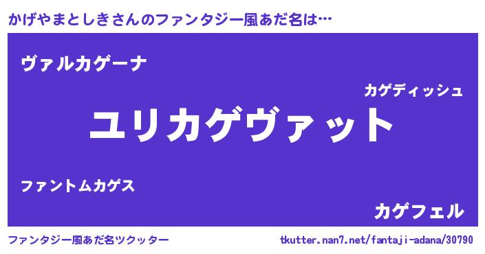 | 男性向けラノベタイトル風あだ名 | 『転生したらかげやまとしきだった件』 |