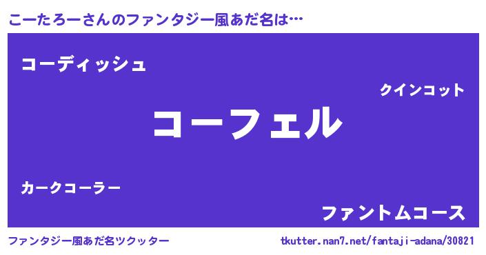 | 男性向けラノベタイトル風あだ名 | 『コータローアートオンライン』 |