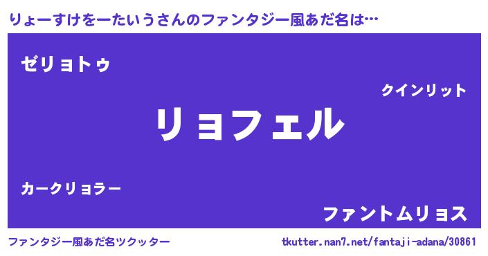 | 男性向けラノベタイトル風あだ名 | 『りょーすけをーたいうの憂鬱』 |