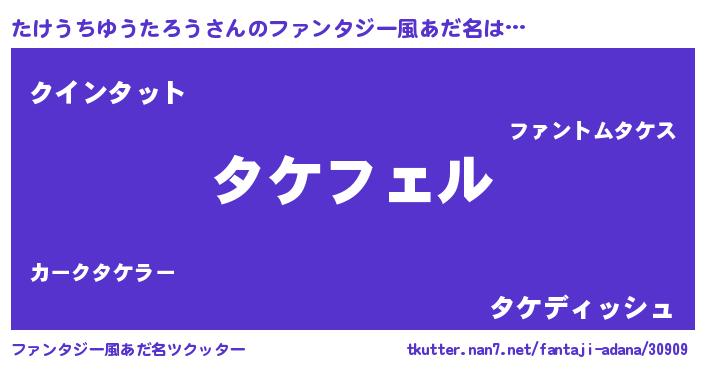 | 女子向けラノベタイトル風あだ名 | 『たけうちゆうたろう姫と円卓の騎士』 |