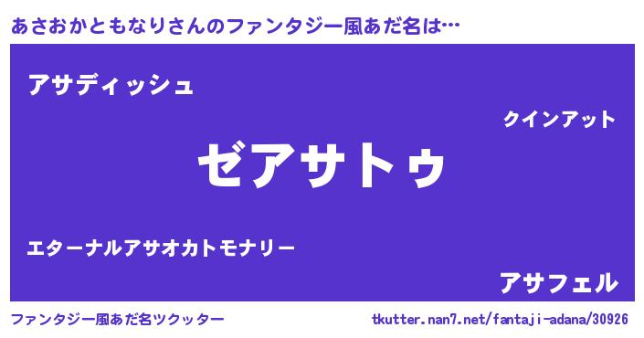 | 女子向けラノベタイトル風あだ名 | 『あさおかともなりなんてお断りですっ。』 |