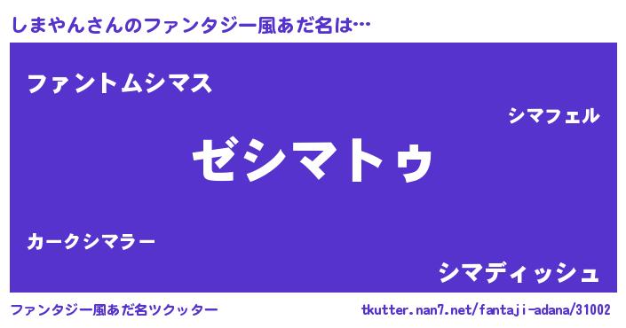 | 意味不明あだ名 | 『自称しまやん』『永久保存しまやん』 |