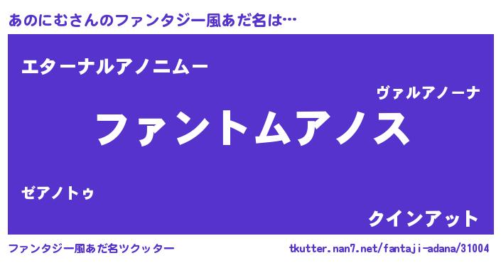 | ヒーロー風カッコイイあだ名 | 『幻影騎士アノ』『ウルトラあのにむマン』 |