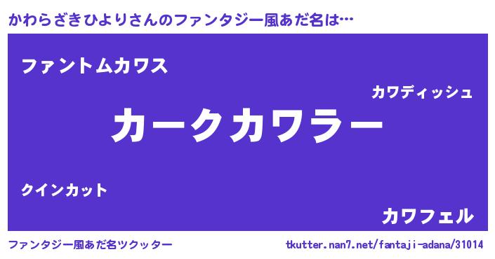 | ヒーロー風カッコイイあだ名 | 『炎刃騎士カワ』『ネオカワラザキヒヨリ』 |