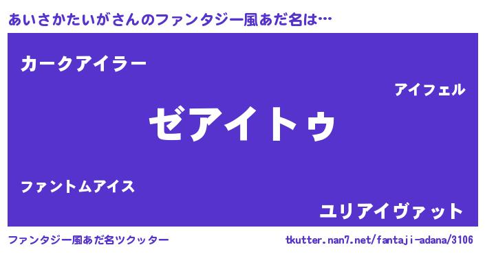 | 男性向けラノベタイトル風あだ名 | 『Re:あいさかたいがから始める異世界生活』 |