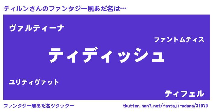 | 男性向けラノベタイトル風あだ名 | 『ティルンという概念が存在しない退屈な世界 』 |