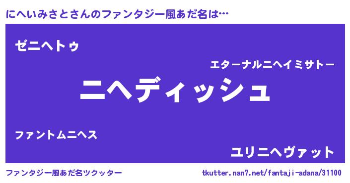 | ヒーロー風カッコイイあだ名 | 『ネオニヘイミサト』『幻影騎士ニヘ』 |