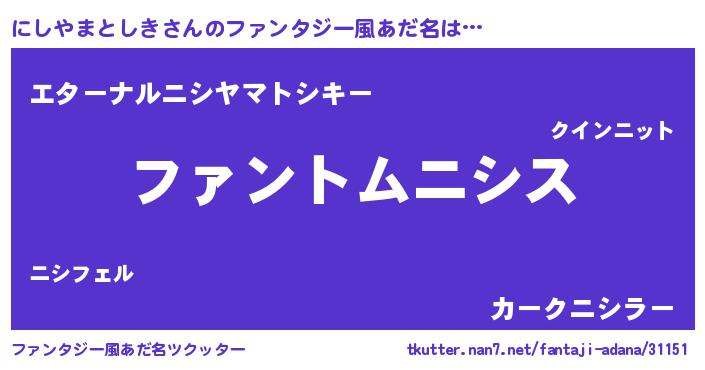 | ポケモン風あだ名 | 『ヒニシヤマトシキ』『ニシヤダネ』 |