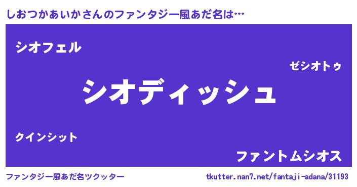 | 意味不明あだ名 | 『永久保存しおつかあいか』 |