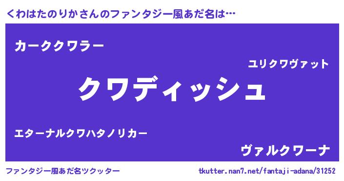 | 意味不明あだ名 | 『永久保存くわはたのりか』 |