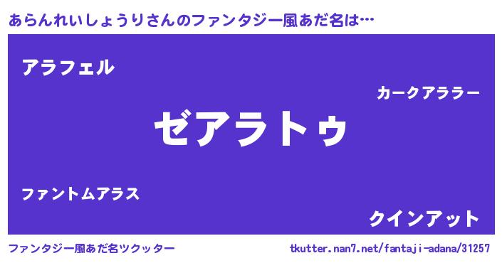 | 意味不明あだ名 | 『自称あらんれいしょうり』 |