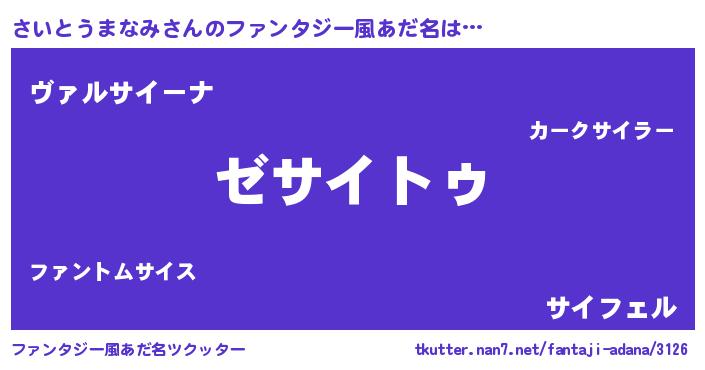 | 意味不明あだ名 | 『自称さいとうまなみ』 |